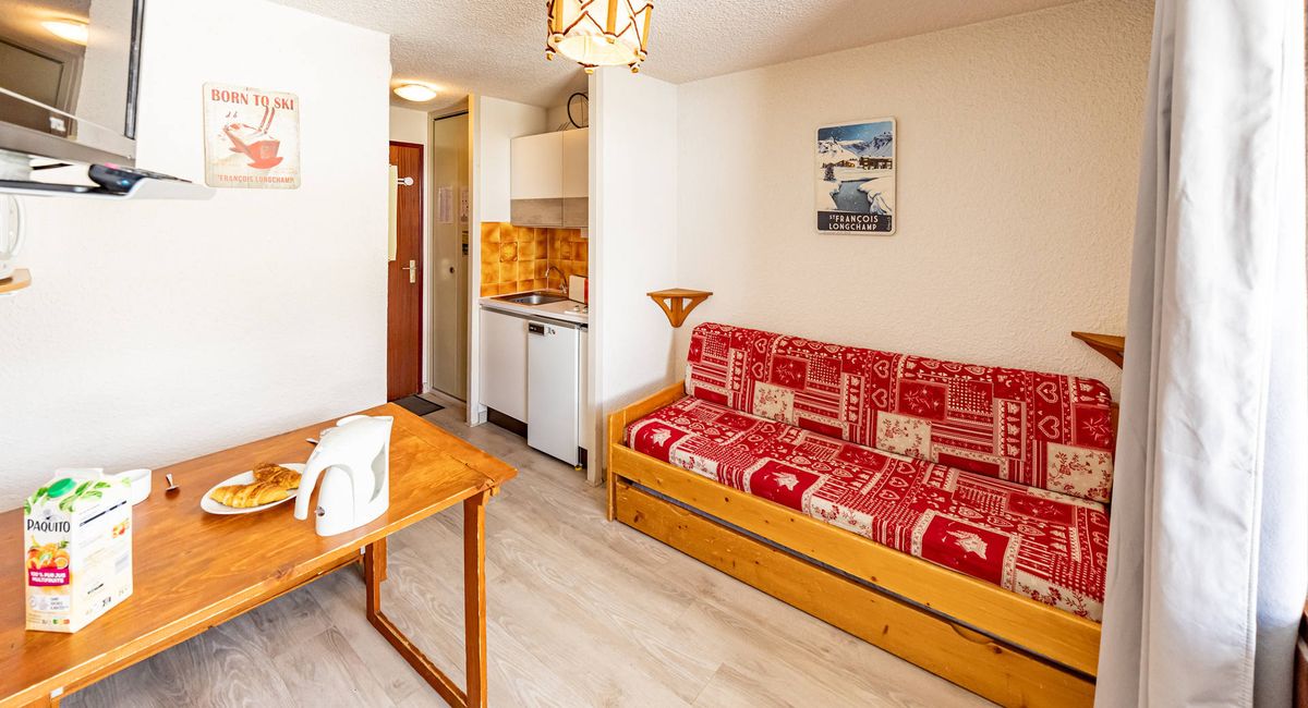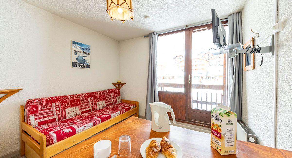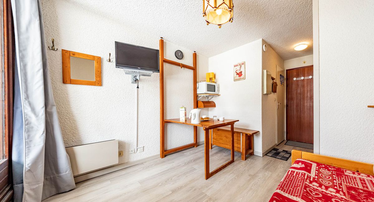 - Living room with pull-out sofa and wall-mounted flat-screen TV.