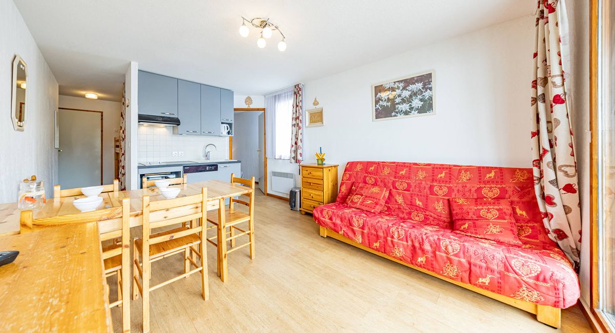 T2 35sq.m. for 6 people with south-facing balcony overlooking the valley.