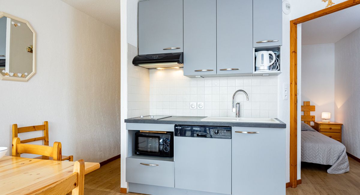 - Modern, well-equipped kitchenette: ceramic hob, microwave grill, French press coffee maker, fondue and raclette appliances.