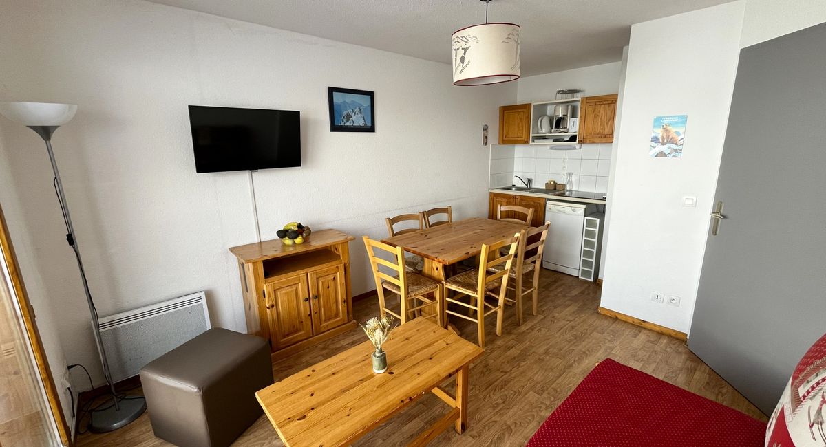 Treat yourself to a cosy holiday in the heart of the mountains. Located in the Les Balcons du Soleil 2 residence, this charming 29 m² 3-room flat comfortably sleeps up to 6 people, making it ideal for holidays with family or friends. Just 100 m from the ski lifts, with direct access from the Route du Tour green run, it also offers exceptional panoramic views of the peaks from its balcony.
