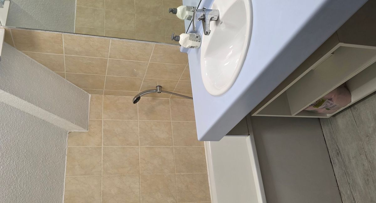 The flat has two bedrooms, one with a double bed (140cm) and the other with two single beds, as well as a sofa with pull-out bed in the living room. The flat has a renovated kitchenette equipped with oven, microwave, dishwasher, fridge and electric coffee machine.