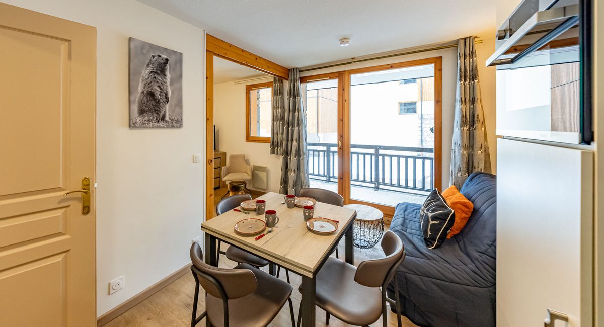 Attractive 35sqm T2 flat for 6 people with south-facing balcony, close to the slopes.