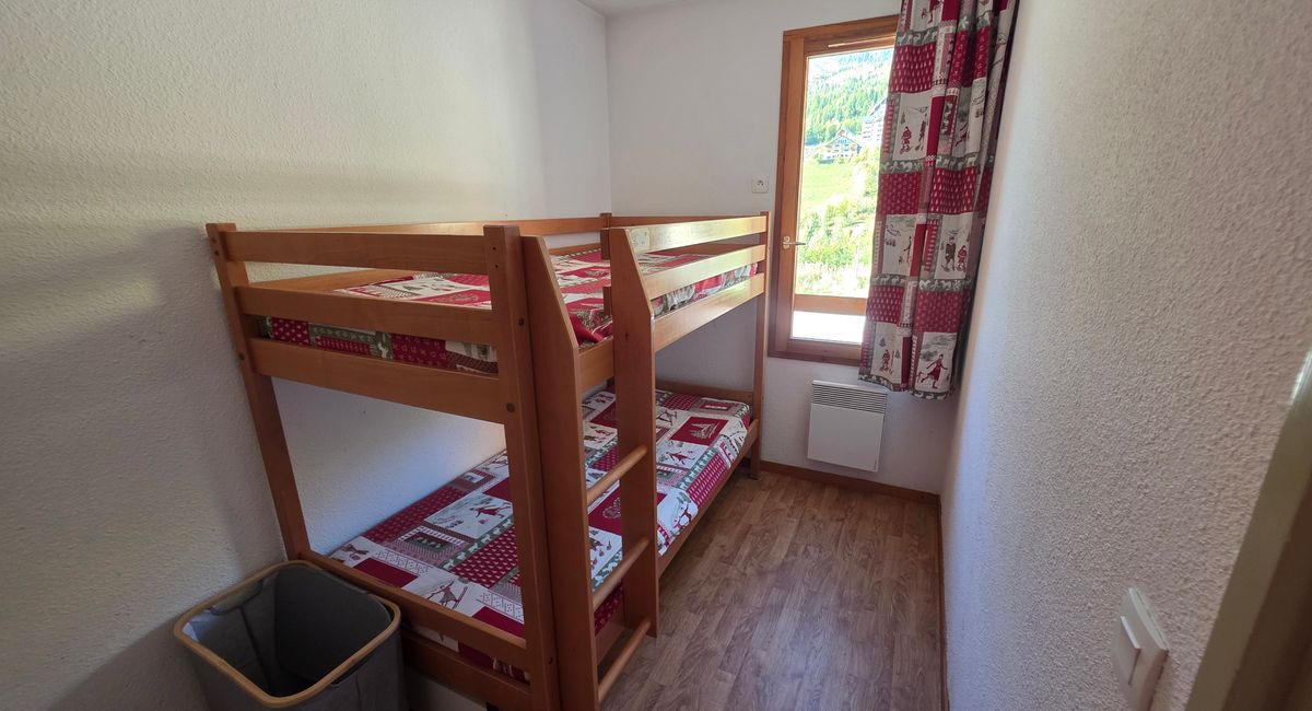 Discover this 36m² flat located in the heart of Saint François Longchamp, in the Résidence Bellevue. This flat sleeps up to 6 people, with a double bed (140cm) in the first bedroom and bunk beds in the second bedroom. The living room has a pull-out sofa bed, ideal for families or groups.