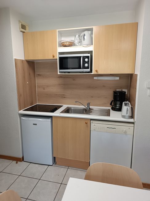 The kitchen is equipped with all the essentials, such as electric oven, microwave, dishwasher and coffee maker. A bathroom with shower and separate WC offer additional comfort.