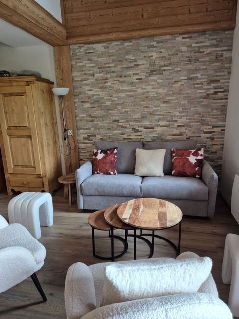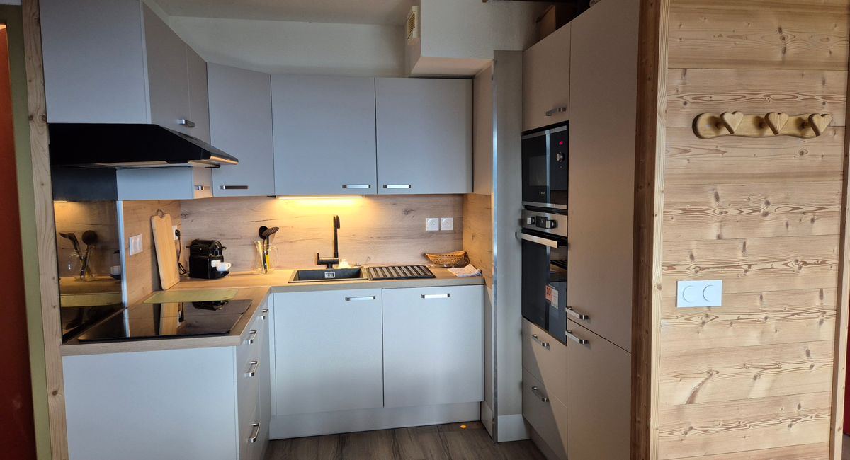 Guests will appreciate the fully equipped kitchen, with induction hob, electric oven, microwave, dishwasher, fridge, freezer, coffee maker, kettle, toaster, fondue set and raclette machine. The duplex also includes two bathrooms (one with bath and one with shower), a separate WC, a towel rail and a hoover.