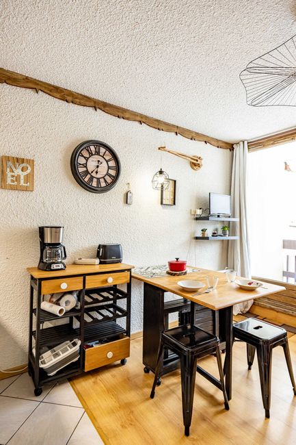 Charming 20sq.m. studio for 4 people, modern industrial decor, close to slopes and shops.