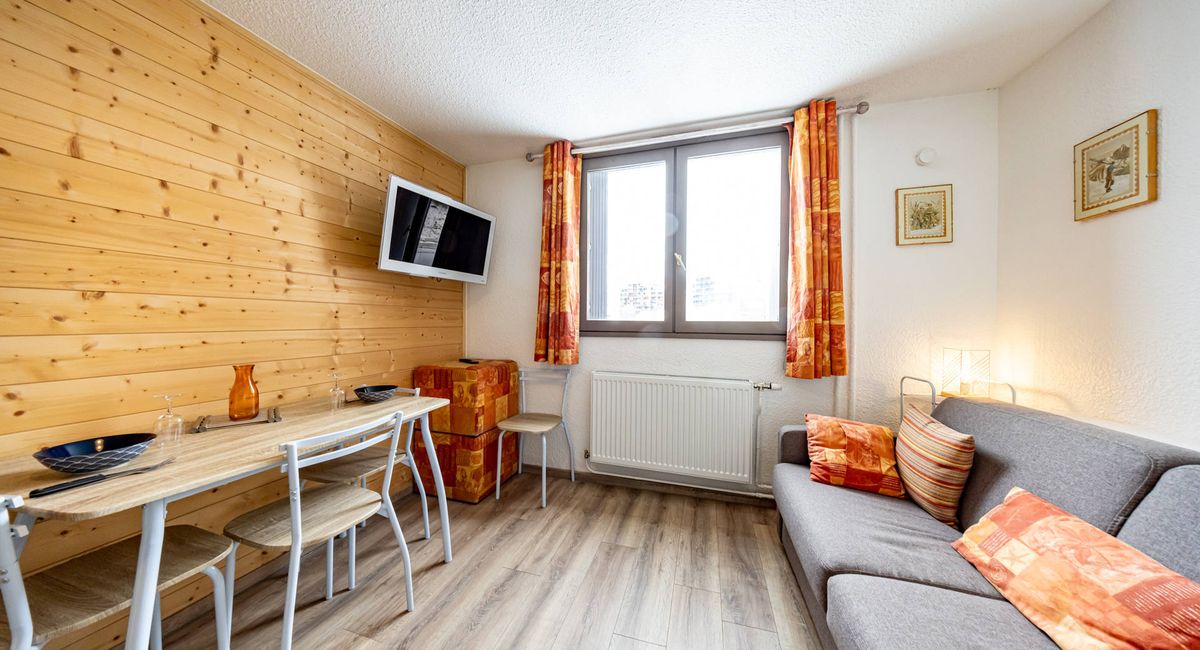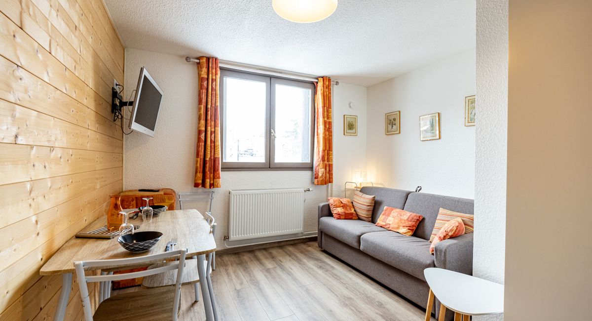 - Living room: 140 cm sofa bed, wall-mounted flat-screen TV.