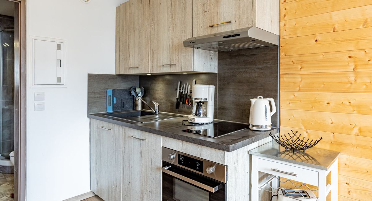 - Kitchenette: modern, fully equipped with ceramic hob, traditional oven, filter coffee maker and all necessary crockery.