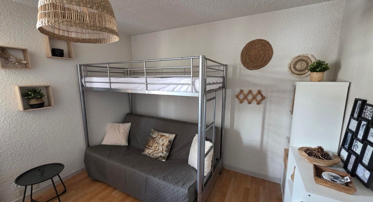 The 17 m² space offers a sofa bed with bunk bed, ideal for families or small groups.