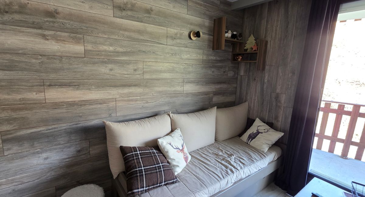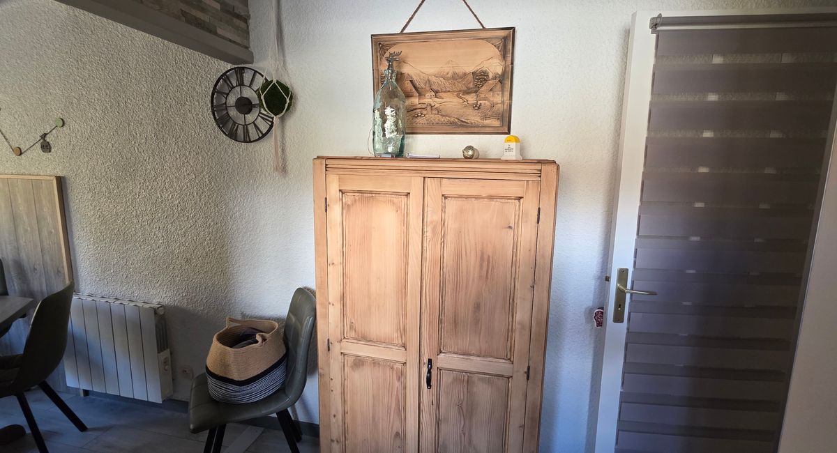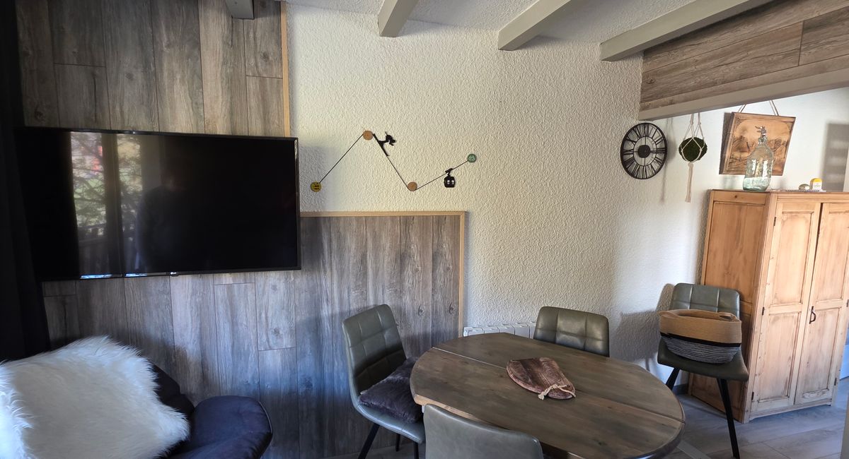 The cosy flat, renovated and decorated with a typical mountain touch, has a living room with sofa bed, a small bedroom with double bed (140 cm) and a mountain corner with bunk beds.