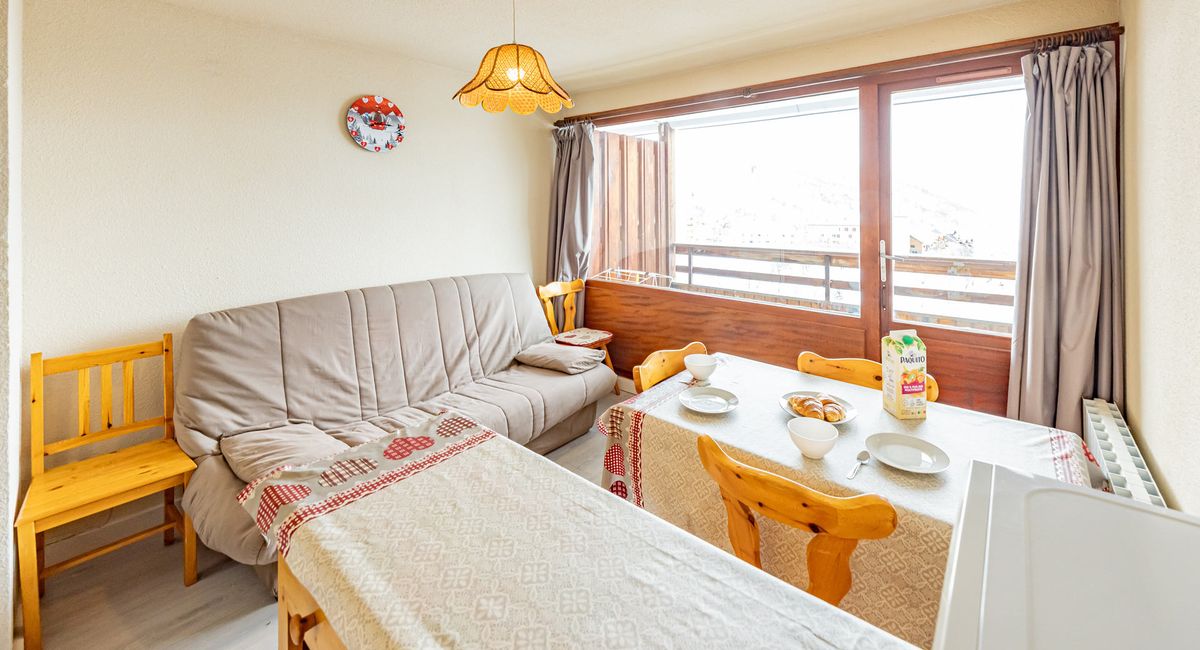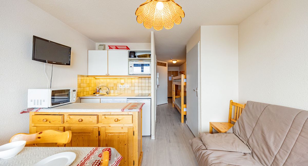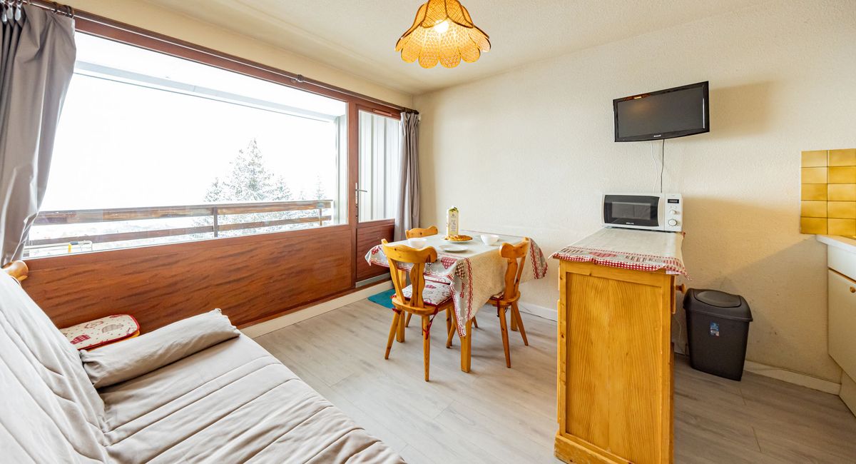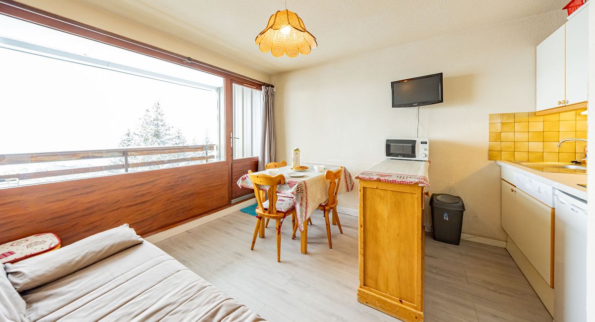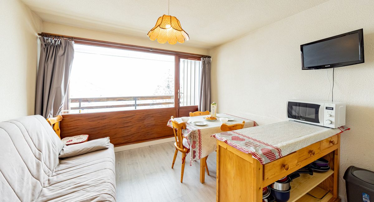 30sqm flat for 5 people with south-facing balcony, close to the slopes and shops.