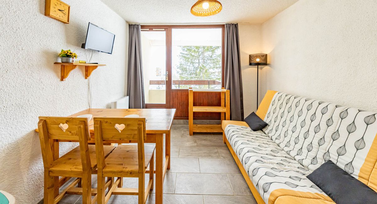 Bright 22m² studio for 4 people, south-facing balcony, close to slopes and shops.