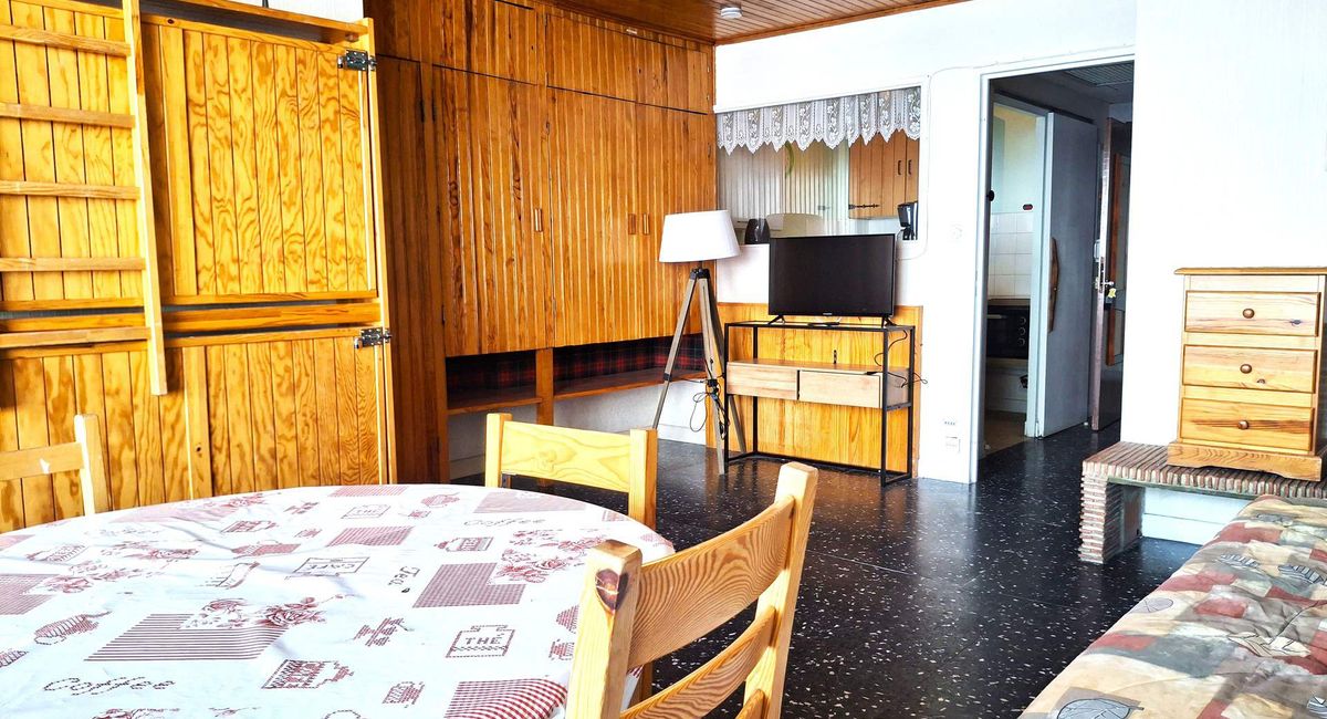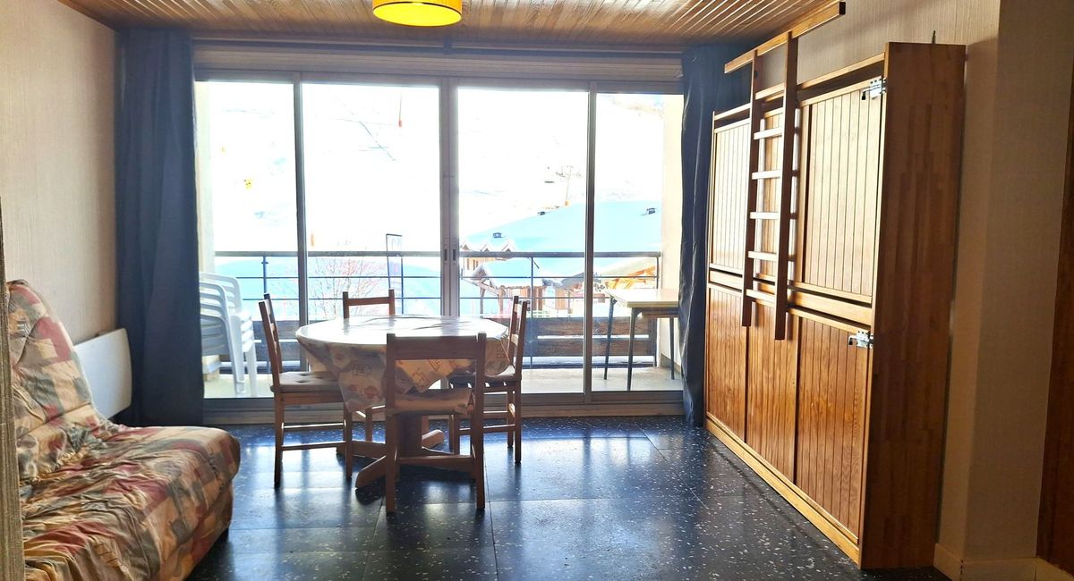 Bright 40sqm studio apartment with south-facing balcony, at the foot of the pistes and shops.