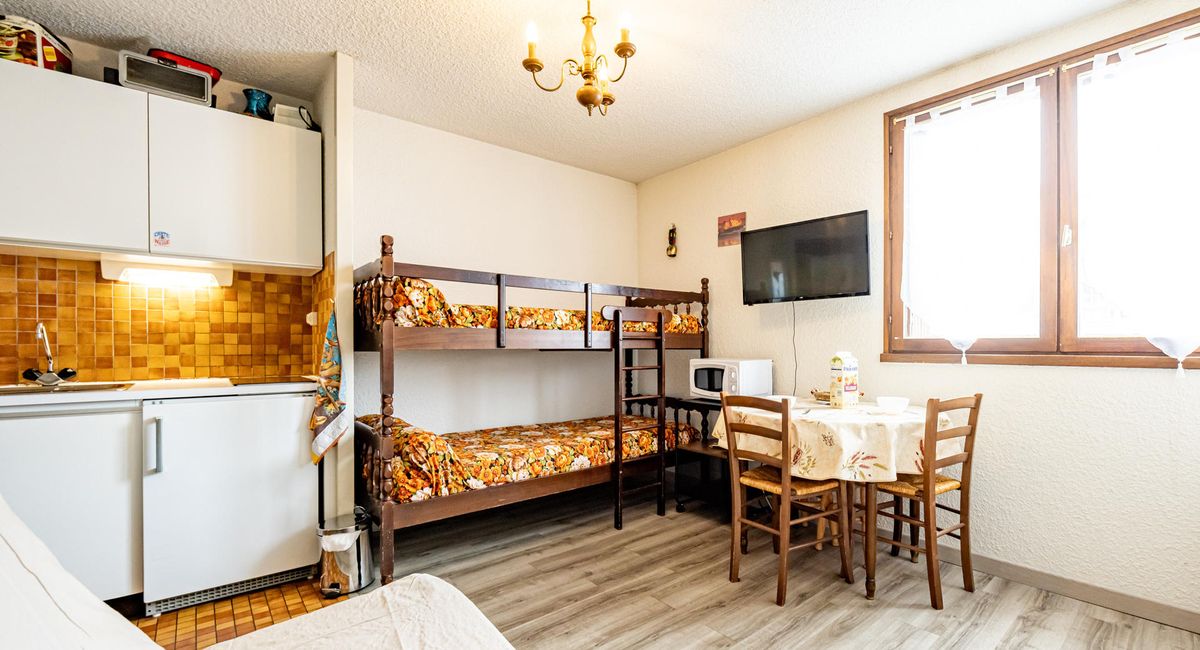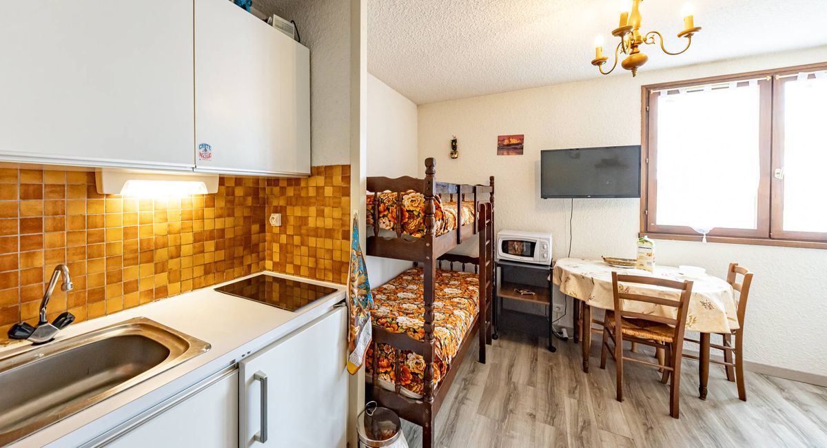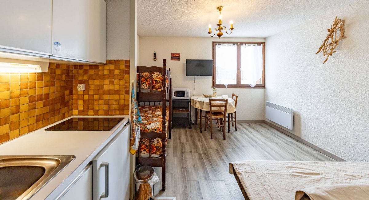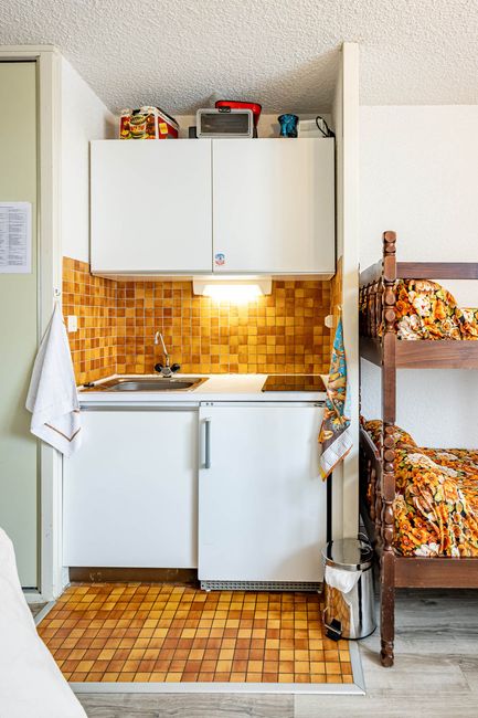 - Kitchenette with ceramic hob, mini-oven and microwave, fondue set, filter coffee maker.