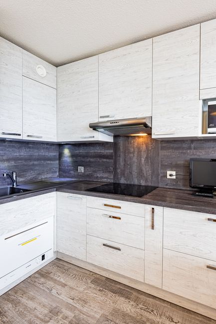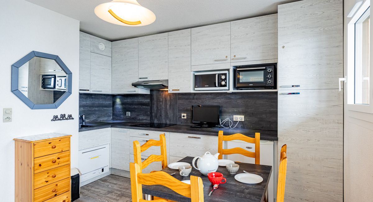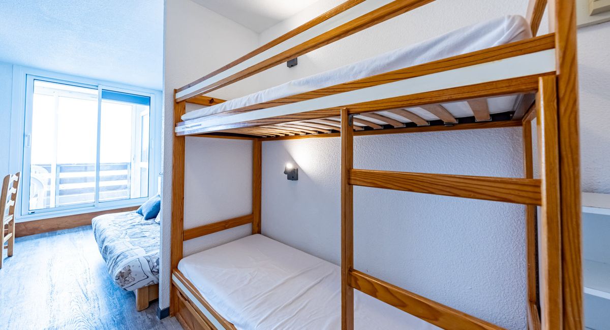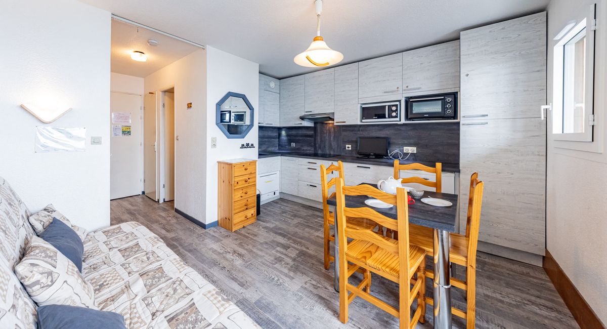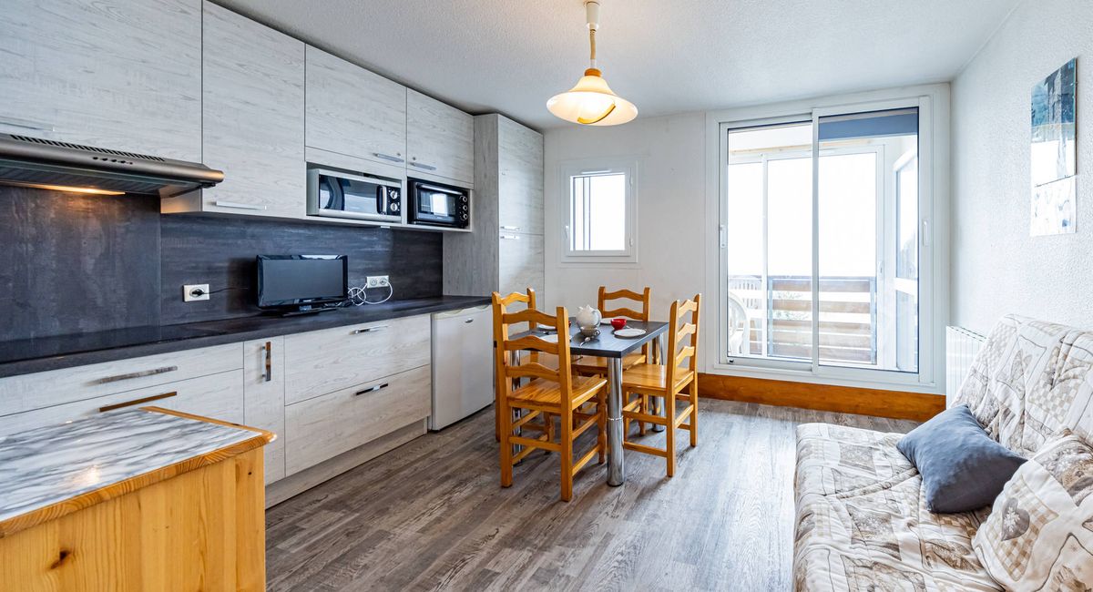 24sqm studio for 4 people with south-facing balcony/veranda, at the foot of the slopes and shops.
