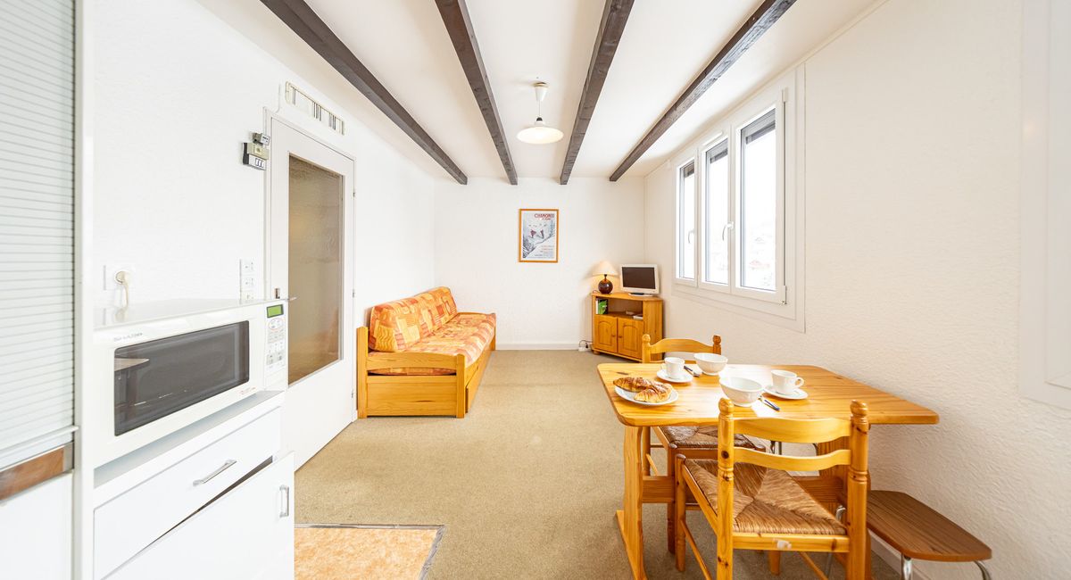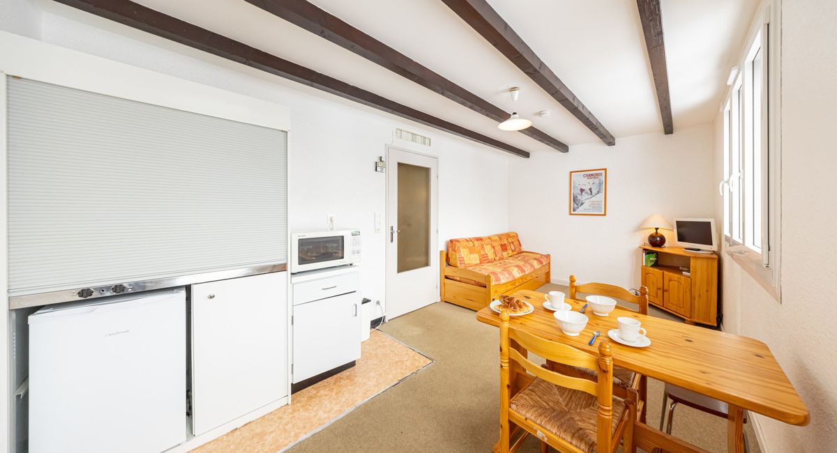 24sqm studio for 2 people at the foot of the pistes and close to the shops.