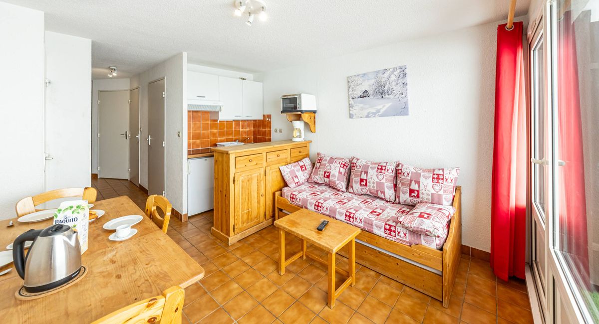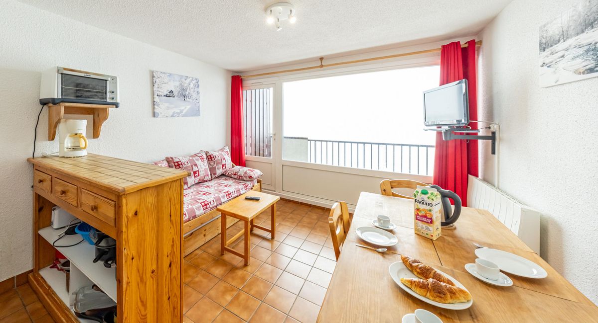 T1 27sq.m. for 5 people, with south-facing balcony overlooking the valley.