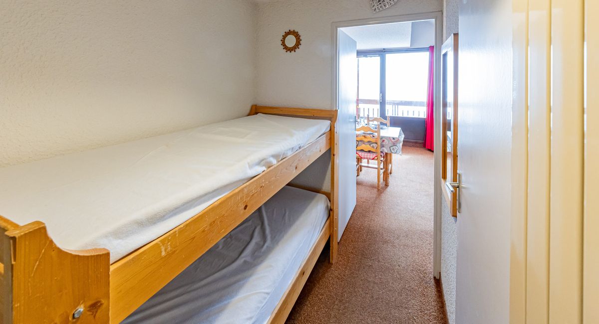 - Mountain corner with bunk bed (sleeps 2, 90cm) separated by a door from the living area.