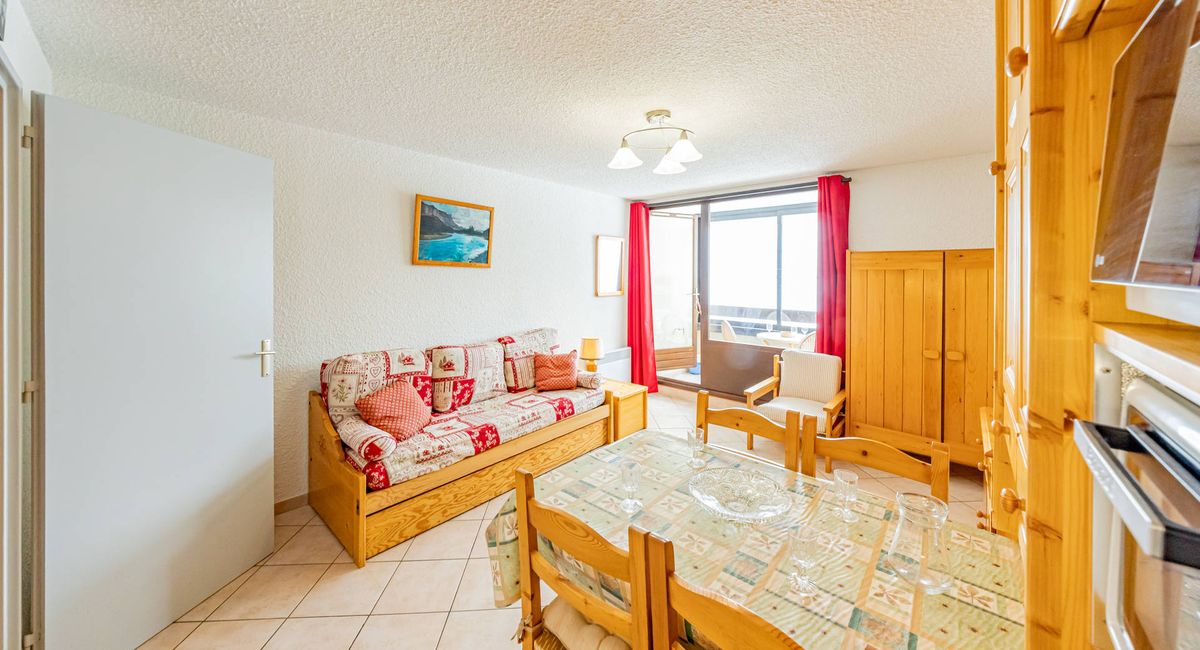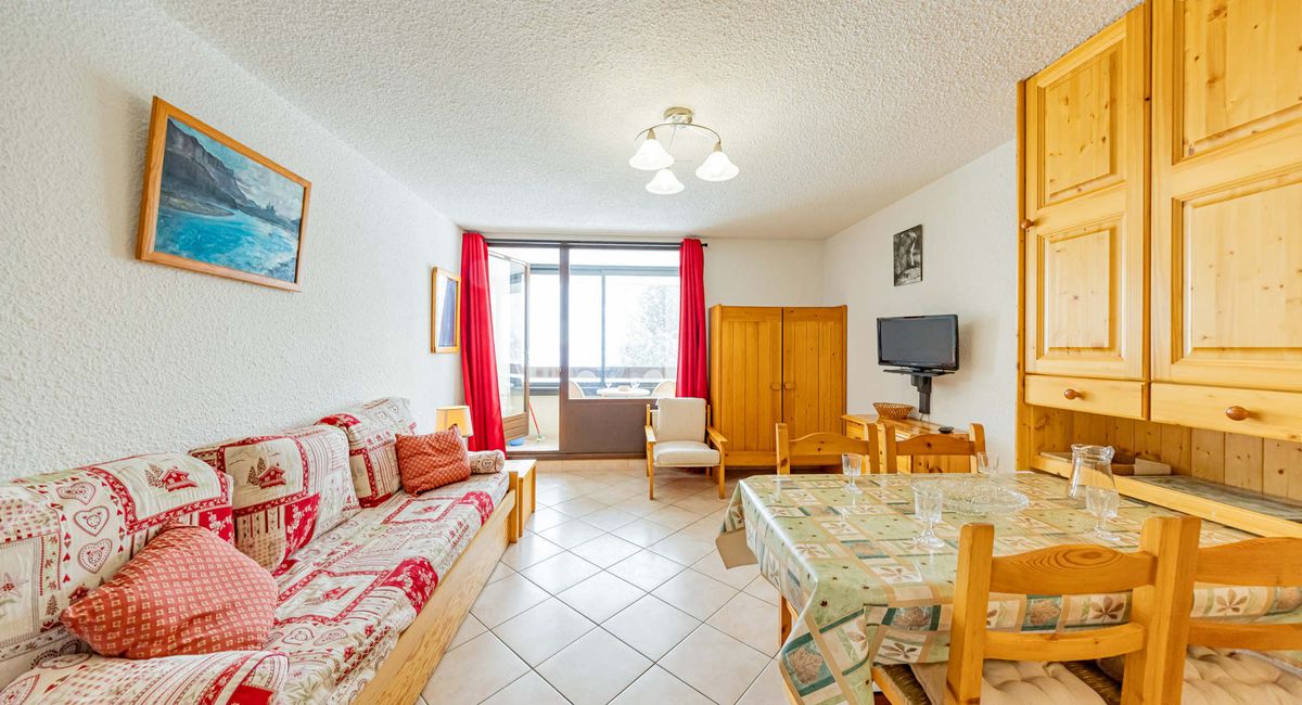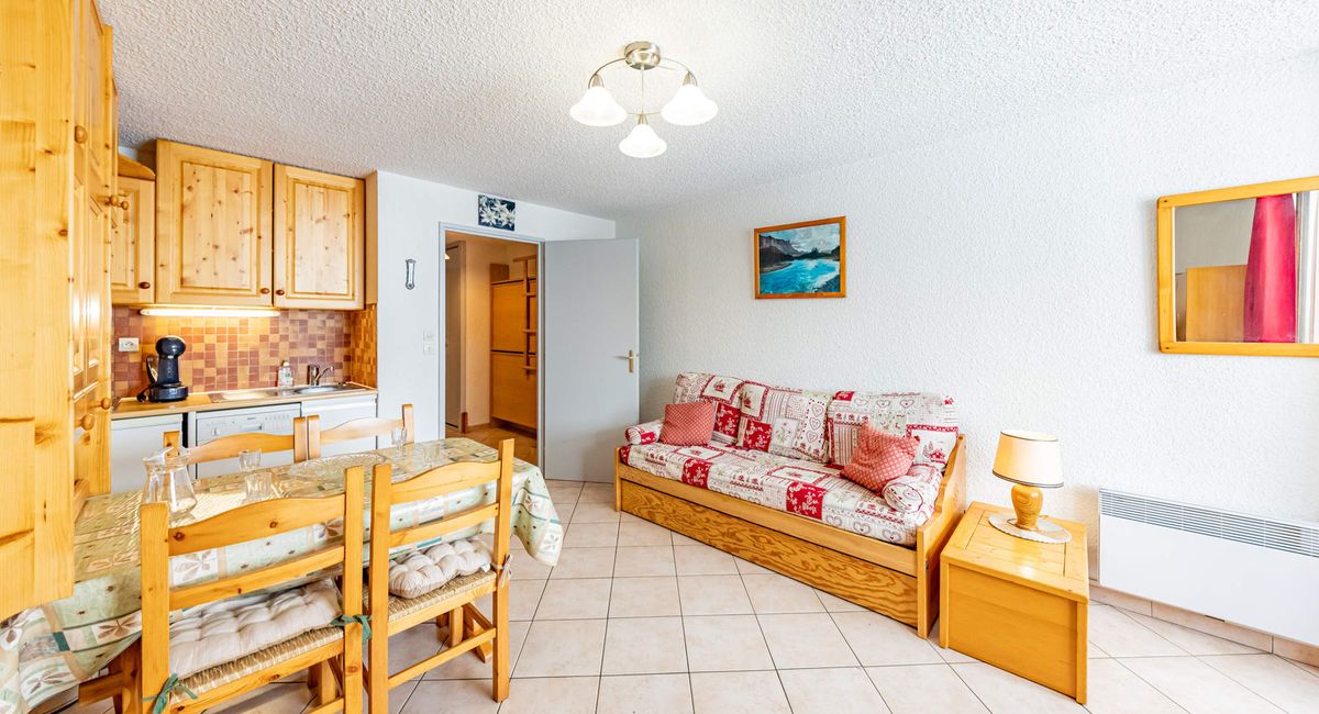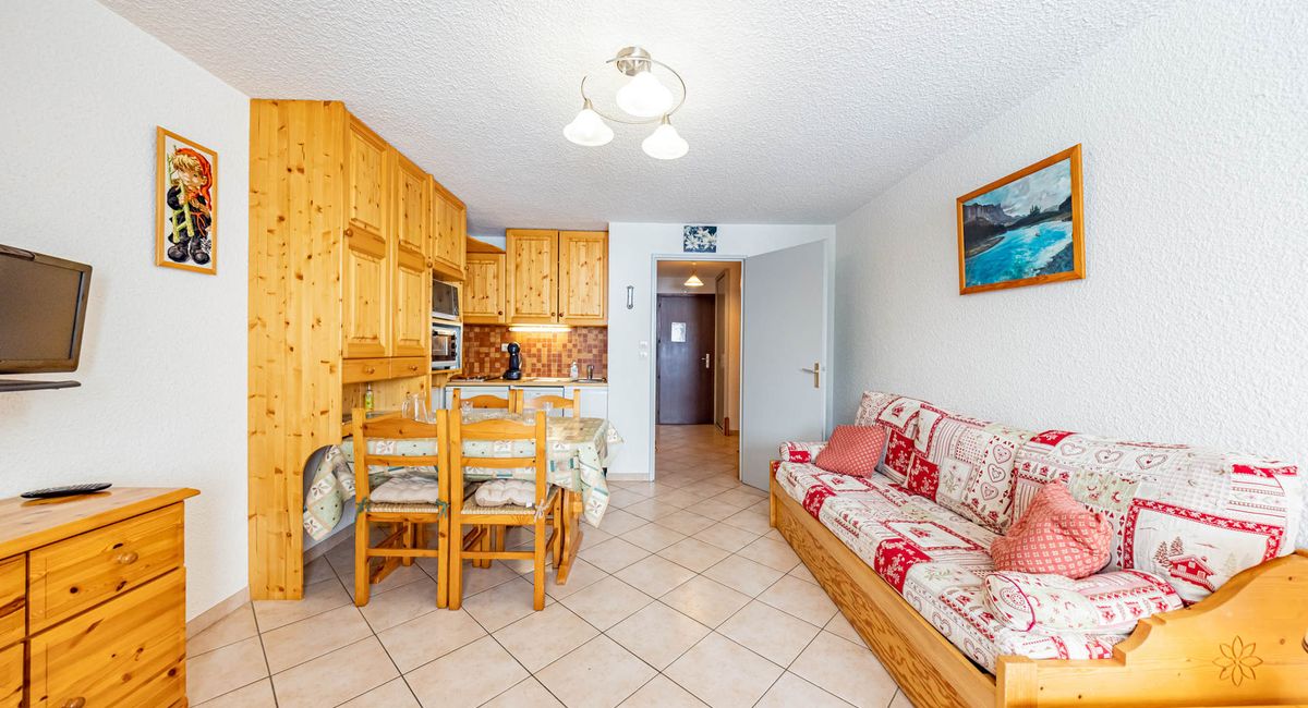 - Living room with pull-out sofa and wall-mounted flat-screen TV.